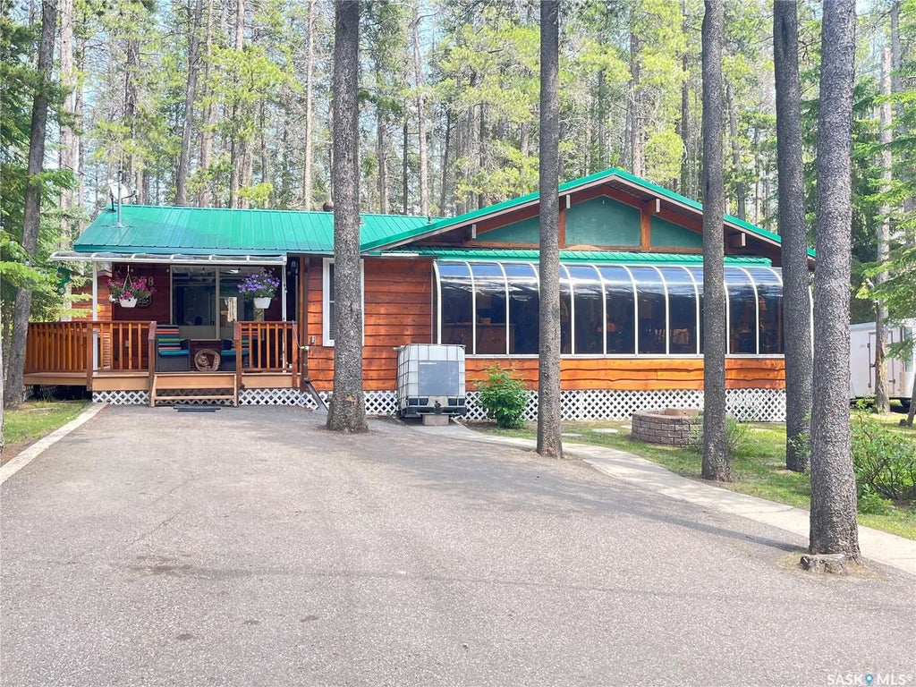 Live year round on the Saskatchewan side of Cypress Hills Provincial Park. This 3 bedroom 2 bathroom cabin has been immaculately maintained. Ask your realtor for the extensive list of upgrades and improvements - located in supplements. With a wrap around deck and a private yard this home offers plenty of outdoor space. There is a designated fire pit area (all the wood is included) as well as three storage sheds. Inside the home you'll find a gorgeous sunroom that doubles as the dining area. With a galley style kitchen that separates the living room and den the home has plenty of space for the whole family. Easy maintenance vinyl plank flooring is throughout the entire house upstairs and down. The basement is under the den and is described as a 'man cave' which is very convenient as the laundry is here as well. Go ahead guys; fold the laundry while watching the game! A Generac has been installed and automatically kicks in if there is a power outage and there are 3 large cisterns that hold water during the off season. With a forced air furnace, electric baseboard heaters, a gas fireplace and a wood burning stove there is definately warmth and comfort year round. This one has so much to offer, don't miss out - book you showing today!