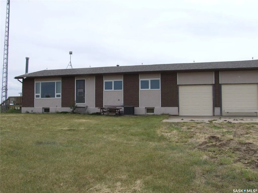 This large family home is located on just over 5 acres just 17.7 KM's from Eatonia, Sk. The main floor consists of 3 bedrooms, 4pc bath and a 2pc bath just off the laundry room, a large living room and a huge eat in kitchen. The basement has a family room with a wood burning fireplace and a wet bar. Also in the basement you will find a 3pc bathroom, bedroom, storage rooms and utility. The windows were replaced in 2007 and the shingles in 2024. The attached garage has 10' ceiling and fully insulated. The new natural gas line and furnace along with the new septic system were installed in Oct/2025. There is a 4,000 gal cistern for water storage. The wrap around deck gives you plenty of options in which view to choose and you can see for miles from this hill top property. All measurements are approximate and can be verified by interested parties. All information is supplied by SAMA and the owners and can also be verified by interested parties. Don't miss out on this opportunity to own a little bit of paradise with amazing views.