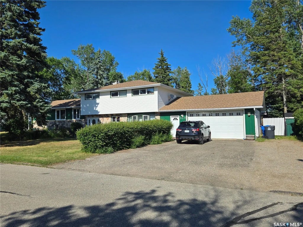 Welcome to 327 Russell Street, in Stoughton, Sk. This very spacious four level split is located on a quiet street, and backs onto the open prairie, allowing the occasional wildlife to visit. Step into the large front foyer ,and head up a few steps to a wide open living/ dining area. The eat-in kitchen boasts oak cupboards, and a functional island .The large dining room offers space for large family gatherings, and the living room features a gorgeous stone, gas fireplace, and French doors to go outside. As you head up the wide oak staircase, you'll marvel at the wide hallway, that leads to a master bedroom w/ two piece ensuite, plus three additional bedrooms, and four piece bath. The lower level consists of a spacious family room with a wood burning fireplace, a teenager sized bedroom, an office , plus a three piece bath, and laundry/mud room. In the basement, you'll discover a recreation room, perfect for the kids to romp around in, or large family functions. There's also a furnace/ utility room. This home has an oversized 25' x 31' extra insulated, heated garage, as well. Outside, there's a great deck, accessed from the living room, a patio area, and firepit, all situated in a park like yard that features a grassy area, beautiful, stately trees, plus the yard includes a ShelterLogic shed, and two additional storage sheds! Many other extras, including central air, and some underground sprinklers. This home requires some finishing touches, and once complete, will offer you a one of a kind forever home! Call today for your personal showing!