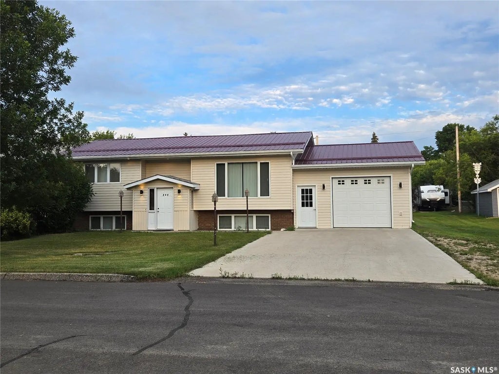 Immaculate 2+ 1 bedroom bi-level in Stoughton, features a huge living room, with a wonderful floor to ceiling picture window, and family oriented kitchen/ dining room, that boasts well maintained oak cupboards. The spacious master bedroom has a convenient three piece bath. There is a second bedroom, that is set up for a stacking washer and dryer, but easily converted to the original closet. There is also a four piece bath with a jetted tub, to complete the main floor. The lower level consists of a very open family room, an additional bedroom, den and large utility/laundry room. The gorgeous laminate flooring on the lower level is new. This home has extra lighting situated throughout the home, so would be bright, even on dull, cloudy days. There is also a single attached garage, that's insulated and drywalled. Step outside , from the kitchen eating area to a family sized deck, that features a remote operated awning, to shelter you from the hot sun or rain. The back yard is fully fenced with chain link fencing, plus there's a good sized storage shed for all your yard equipment and tools. situated on a very quiet street, close to the K-12 school. Move- in ready, so call today to see this impressive home !