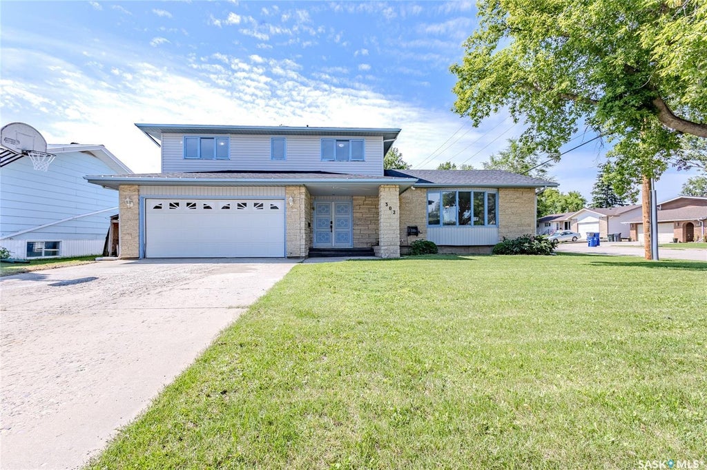 Welcome to this small town gem, perfect for families looking for more value without giving up the convenience of Saskatoon. Just a short drive from the city, this home gives you the space, comfort, and community feel that’s hard to find in the city at this price point. This home is ideally situated on a large lot backing the park and high school, perfect for growing families. Step into a spacious front entry that leads up to a stunningly renovated main floor featuring new laminate flooring and a bright bay window in the living room. The updated kitchen has a black butcher block eat-up island, quartz countertops, under-cabinet lighting, backsplash, stainless steel appliances, and a double undermount sink. A functional walkthrough pantry connects to the rear mudroom with main floor laundry and a convenient two-piece bath. The adjacent dining area offers direct access to the back deck, while a cozy family room with wood-burning fireplace and additional patio doors provides a second main floor gathering space. Upstairs, you'll find three bedrooms with new carpet including a spacious primary suite with a walkthrough closet and a luxurious en-suite featuring a double vanity, freestanding tub, and oversized shower. The partially finished basement includes a fourth bedroom, rec room, storage, and a bonus room perfect for a play area or indoor hockey practice. The large backyard is fully fenced with a gate for RV access, a storage shed, and plenty of room to play. A double attached heated garage completes this fantastic property, ready for a new family to call it home! Contact your Realtor today to schedule a private showing.